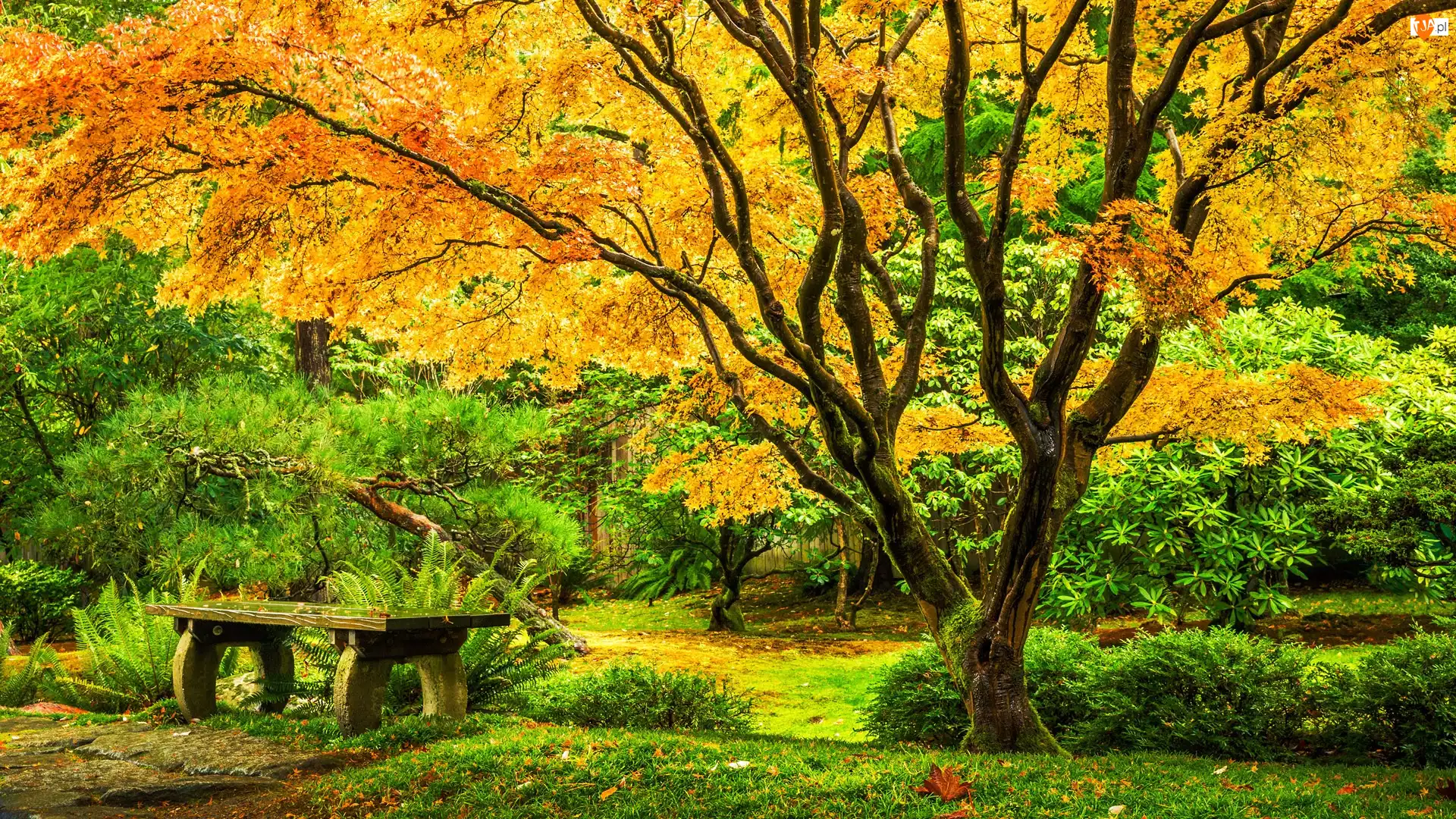 Klon japoński, Park, Stany Zjednoczone, Ławka, Seattle, Ogród, Washington Park Arboretum