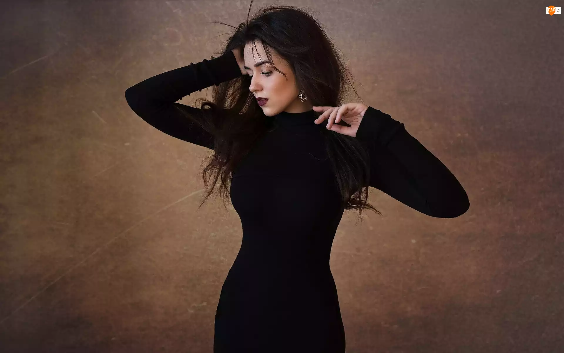Brunetka, Kobieta, Czarna, Sukienka