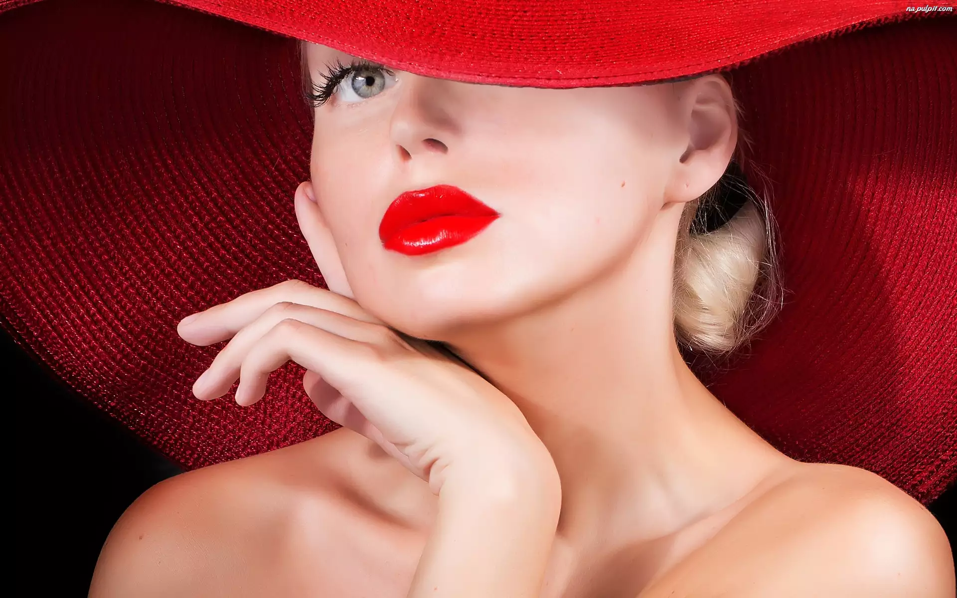 Kapelusz, Kobieta, Makijaż, Czerwony