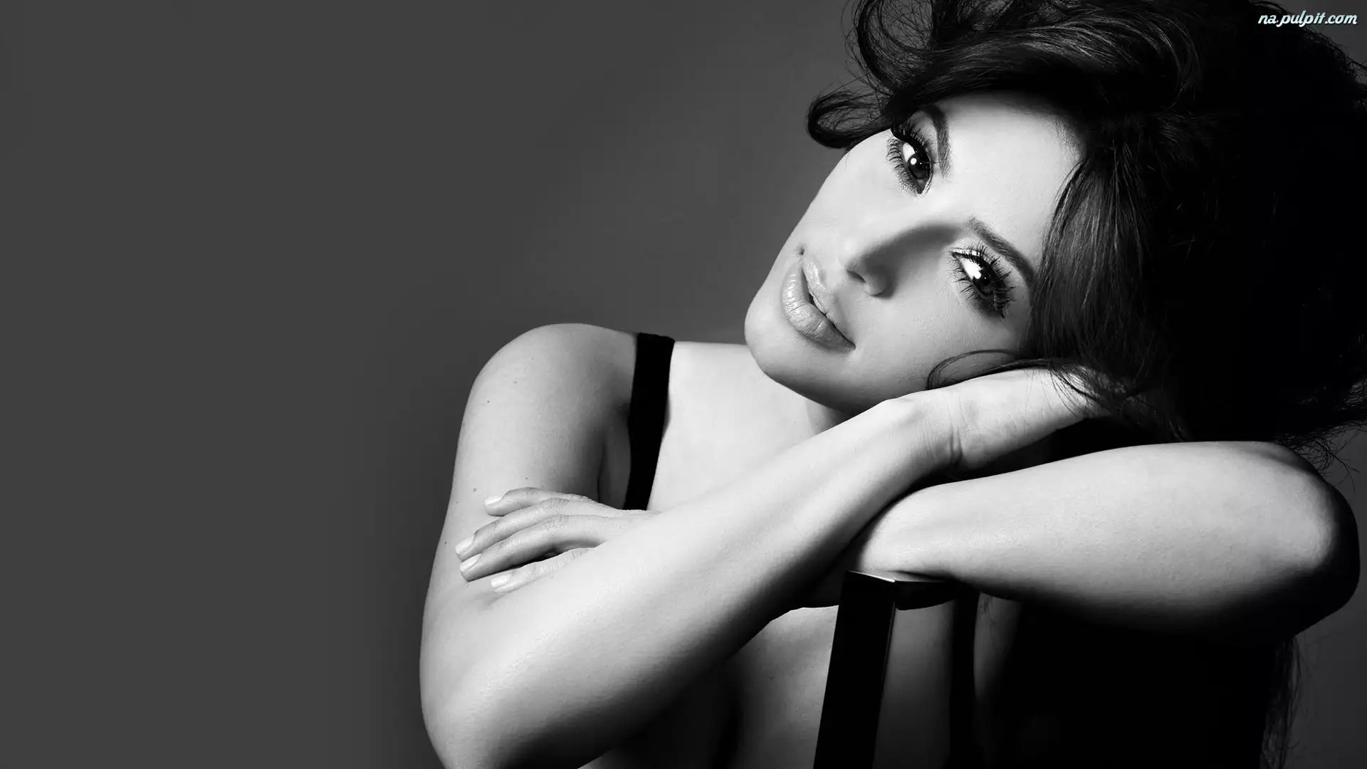 Kobieta, Brunetka, Kim Kardashian, Czarno-Białe