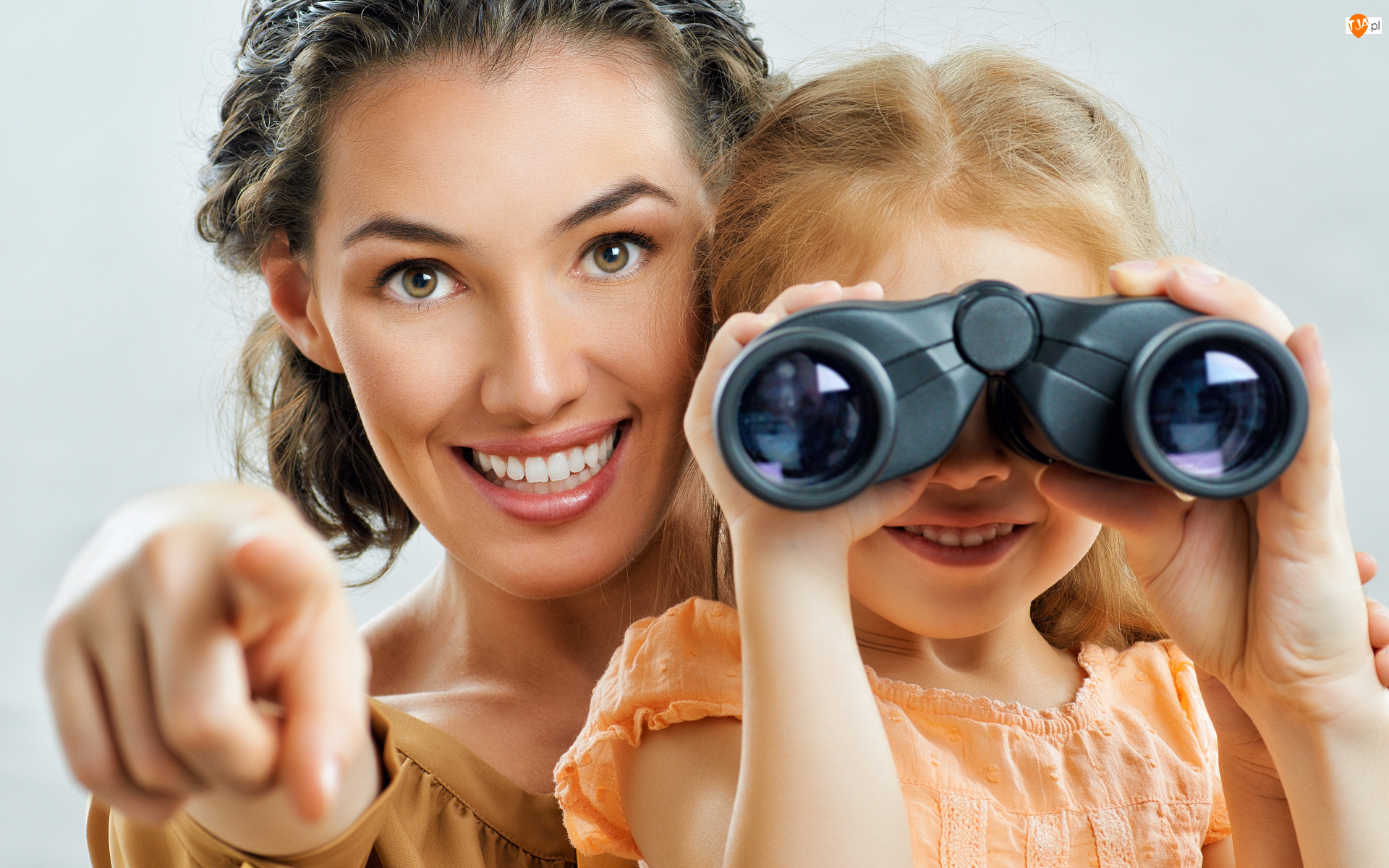 Kobieta i dziecko z lornetką