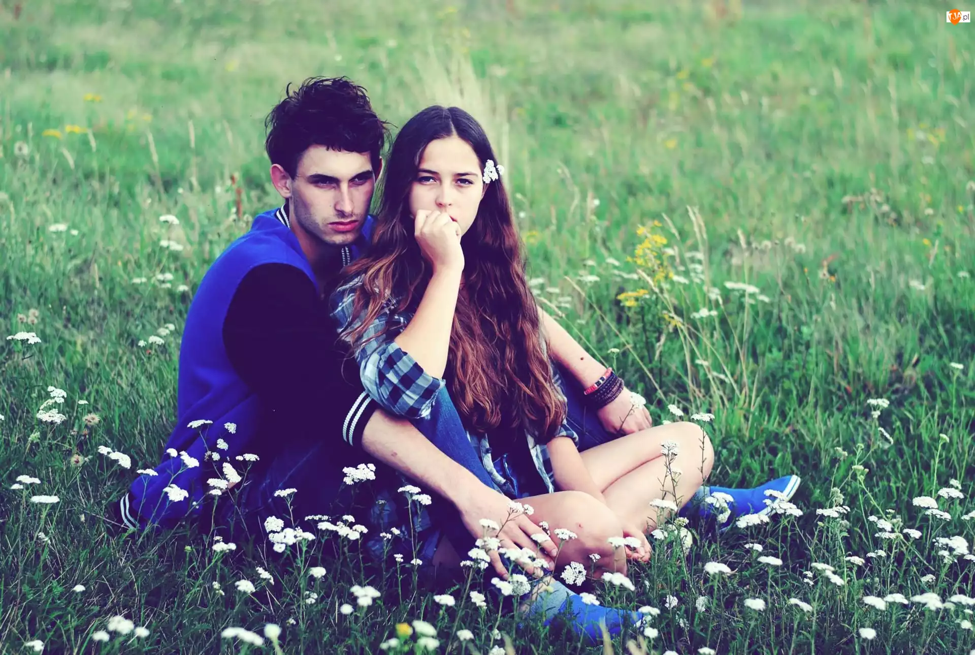 Kobieta, Miłosne, Mężczyzna, Łąka