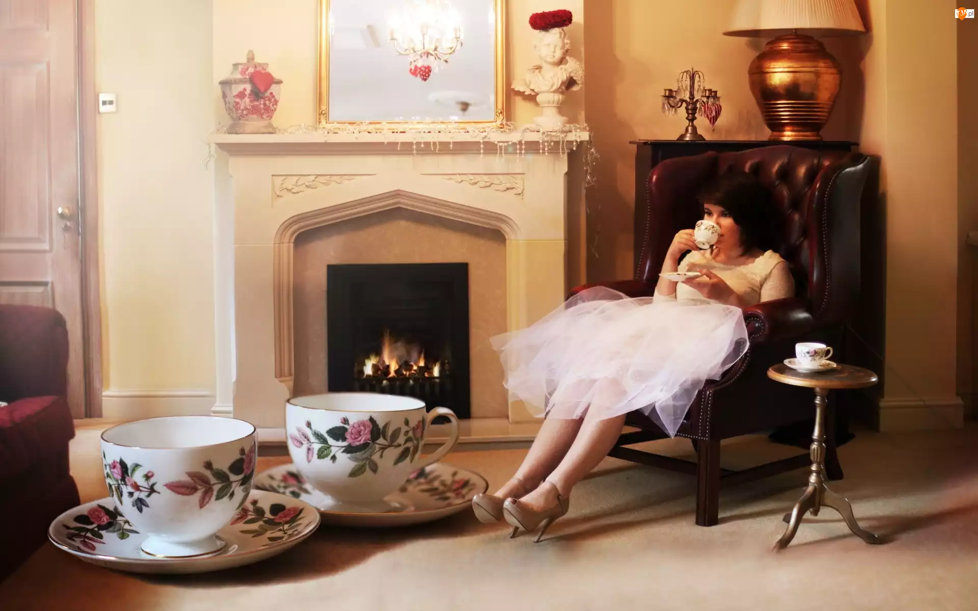 Kobieta, Odpoczynek, Herbata, Filiżanki