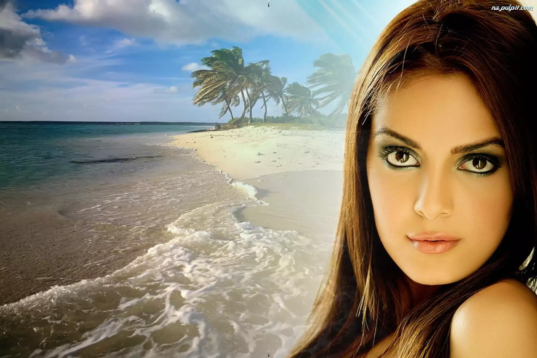 Kobieta, Palmy, Makijaż, Plaża