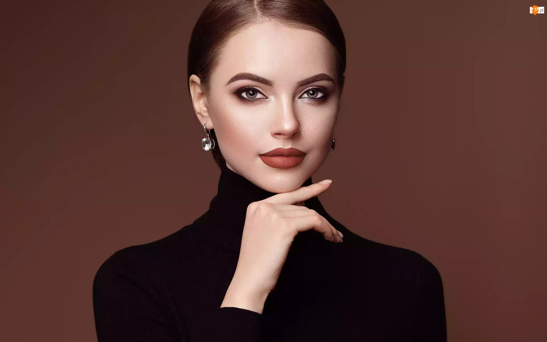 Kolczyki, Golf, Makijaż, Kobieta, Czarny