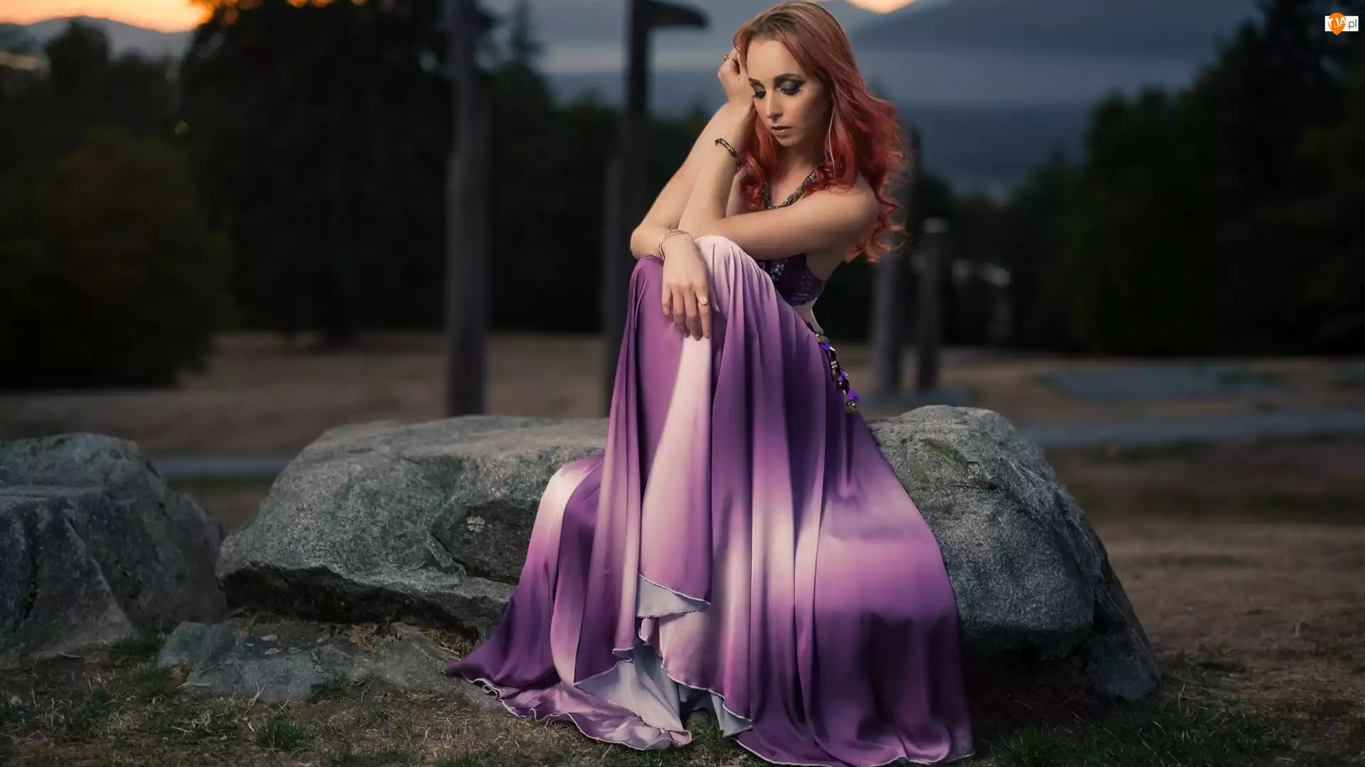Kobieta, Kamienie, Fioletowa, Suknia