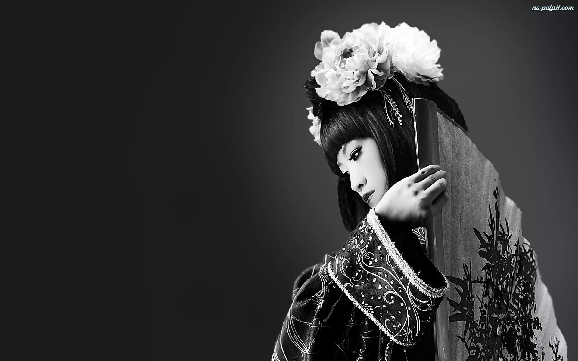 Wachlarz, Kobieta, Kimono, Kwiaty