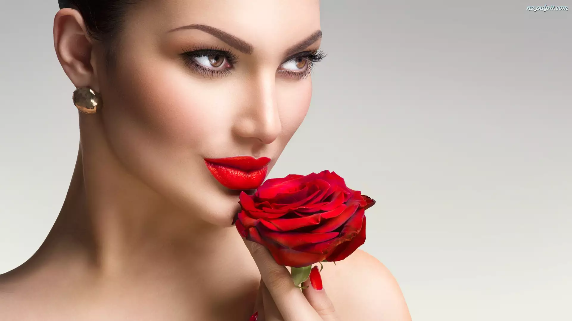 Kolczyki, Róża, Makijaż, Kobieta, Czerwona