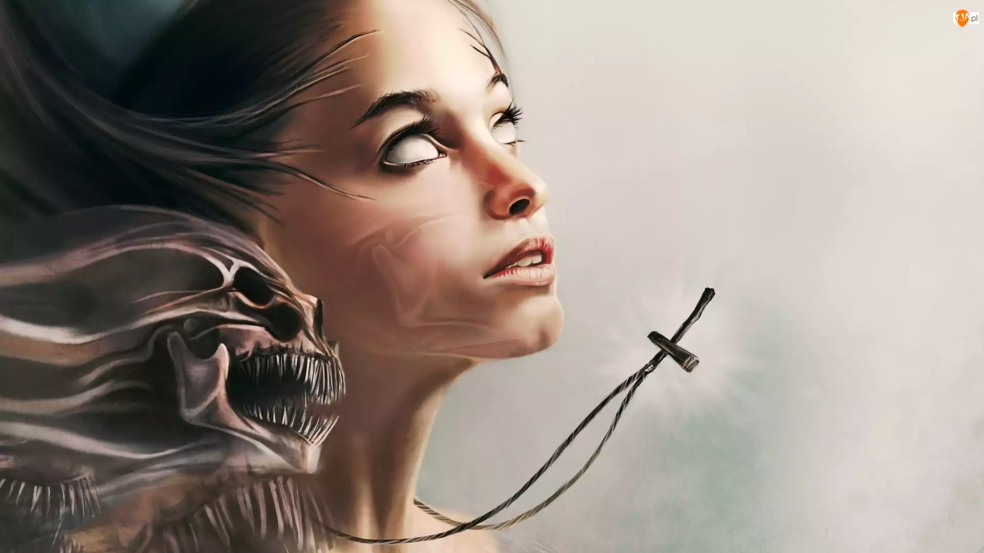 Kobieta z krzyżykiem i potworem