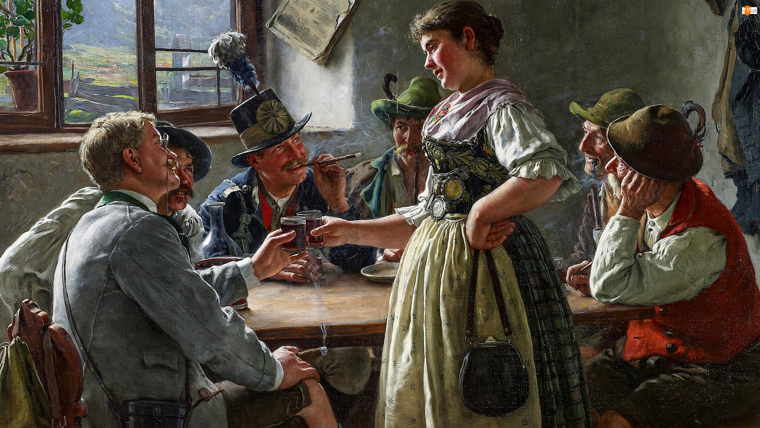 Toast, Kobieta, Stolik, Malarstwo, Mężczyźni, Okno, Emil Rau, Karczma
