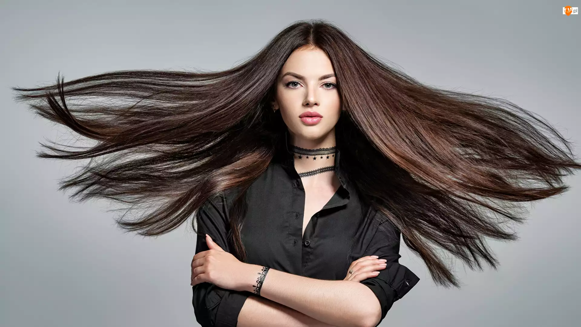 Długie, Włosy, Szatynka, Kobieta, Rozwiane