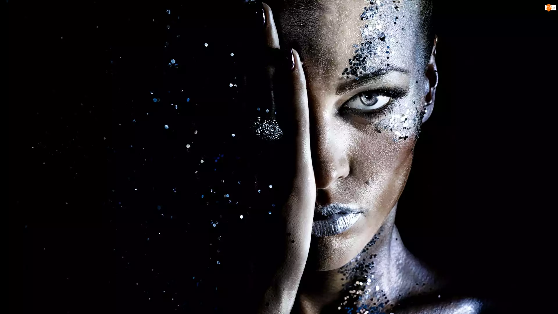 Dłoń, Makijaż, Zakryte, Ciemne, Kobieta, Tło, Oko, Brokat