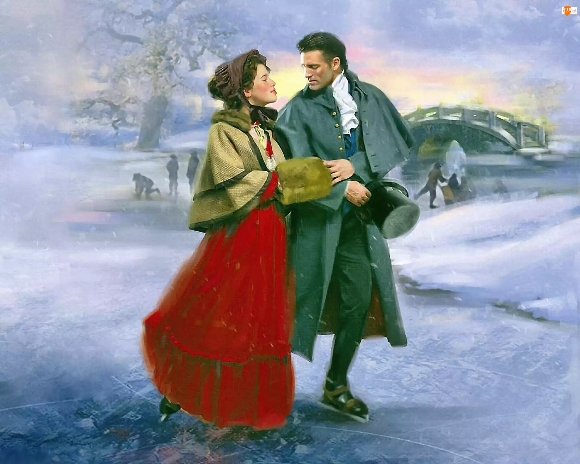 Zima, Kobieta, Mężczyzna, Lodowisko