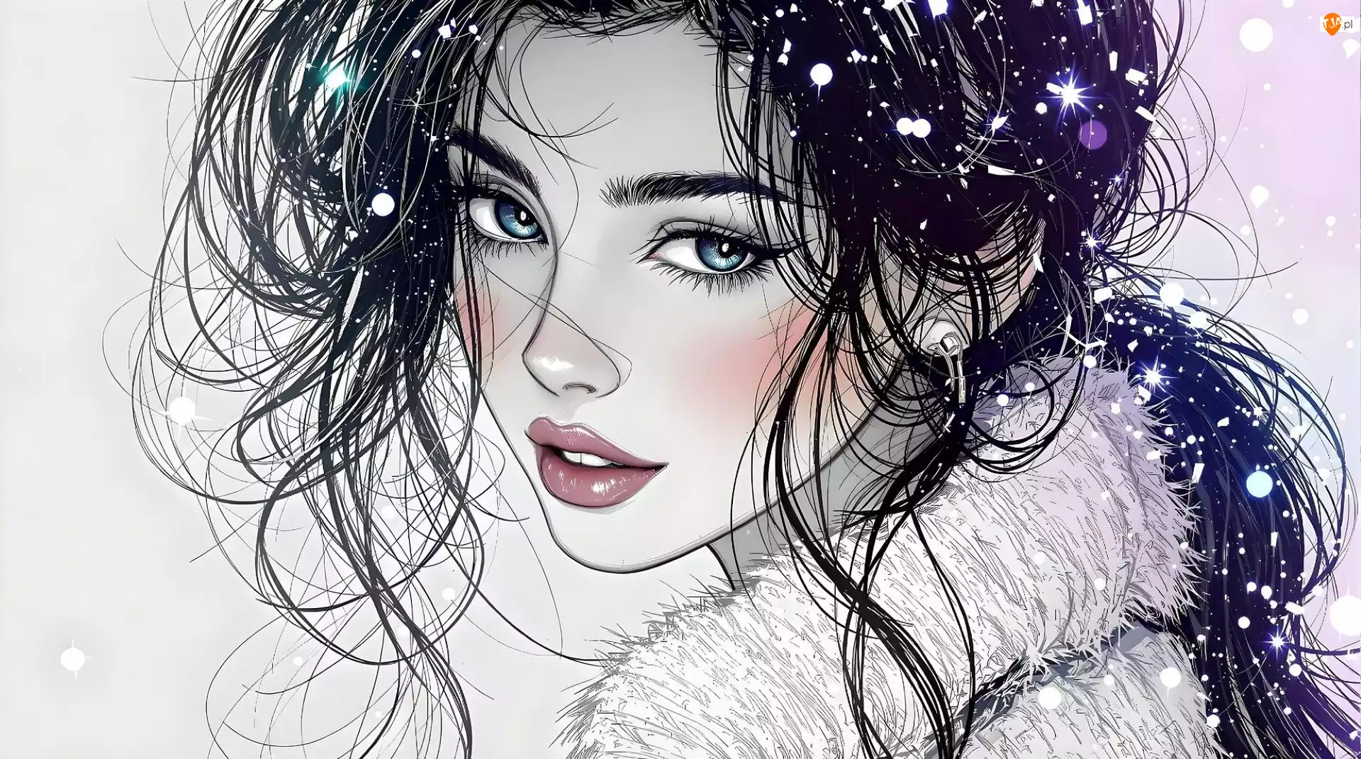 Kobieta, Zima, Twarz, Rysunek, Spojrzenie