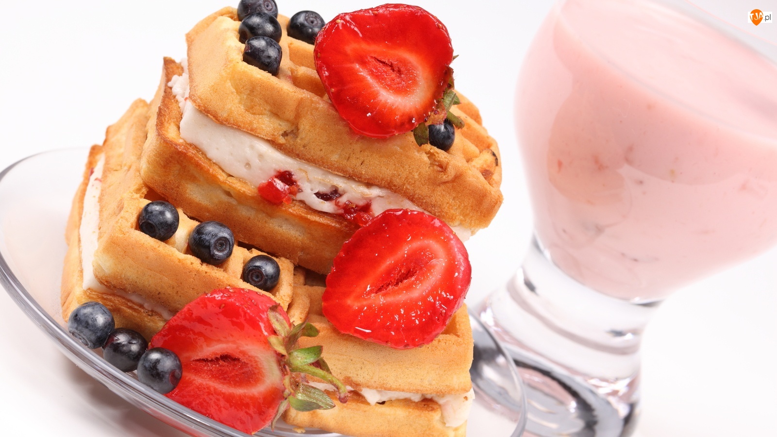Koktajl, Gofry, Bita, Owoce, Śmietana