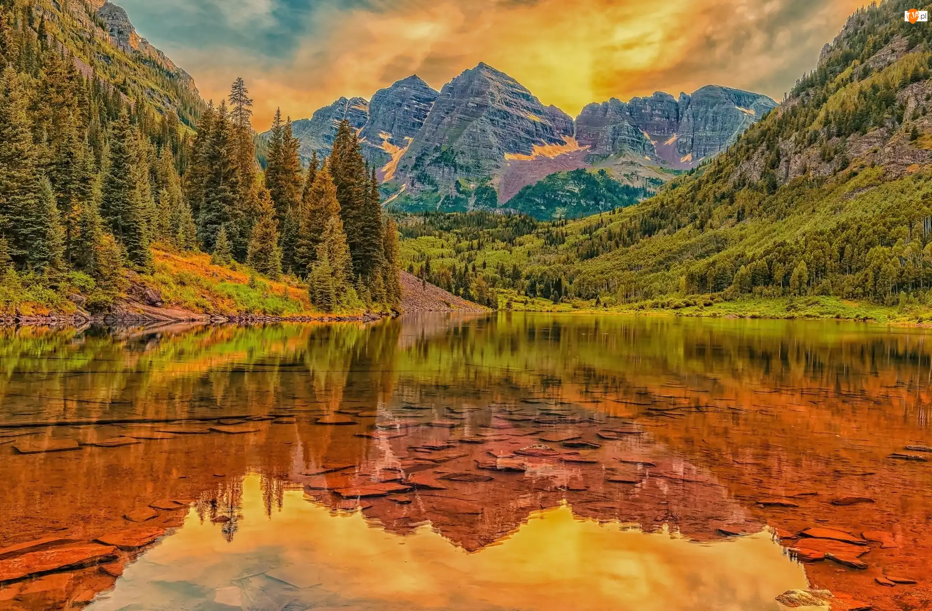 Kolorado, Jezioro Maroon Lake, Lasy, Stany Zjednoc