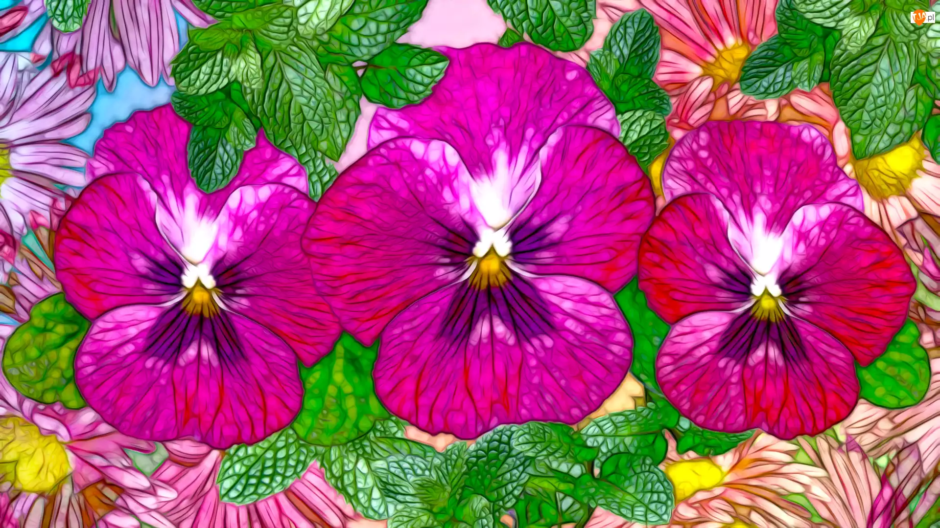 Bratki, Fractalius, Listki, Kwiaty, Grafika