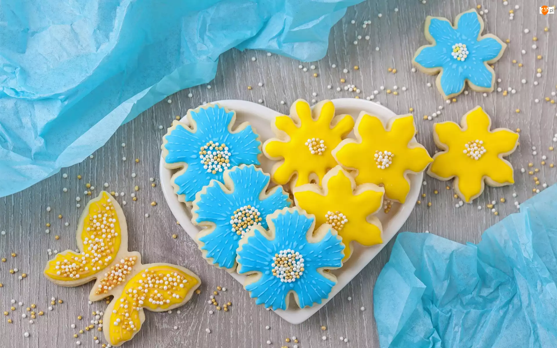 Blat, Żółte, Ciasteczka, Niebieskie, Talerzyk