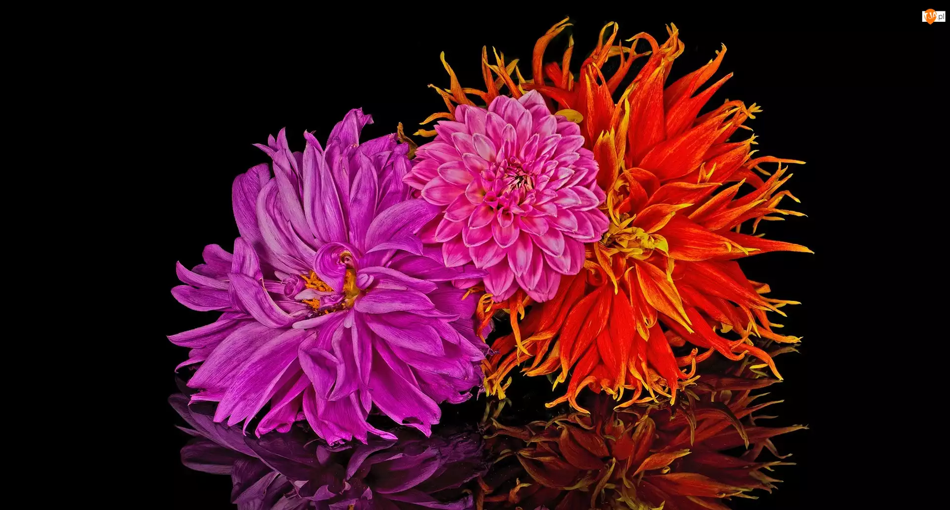 Odbicie, Tło, Dalie, Kwiaty, Czarne