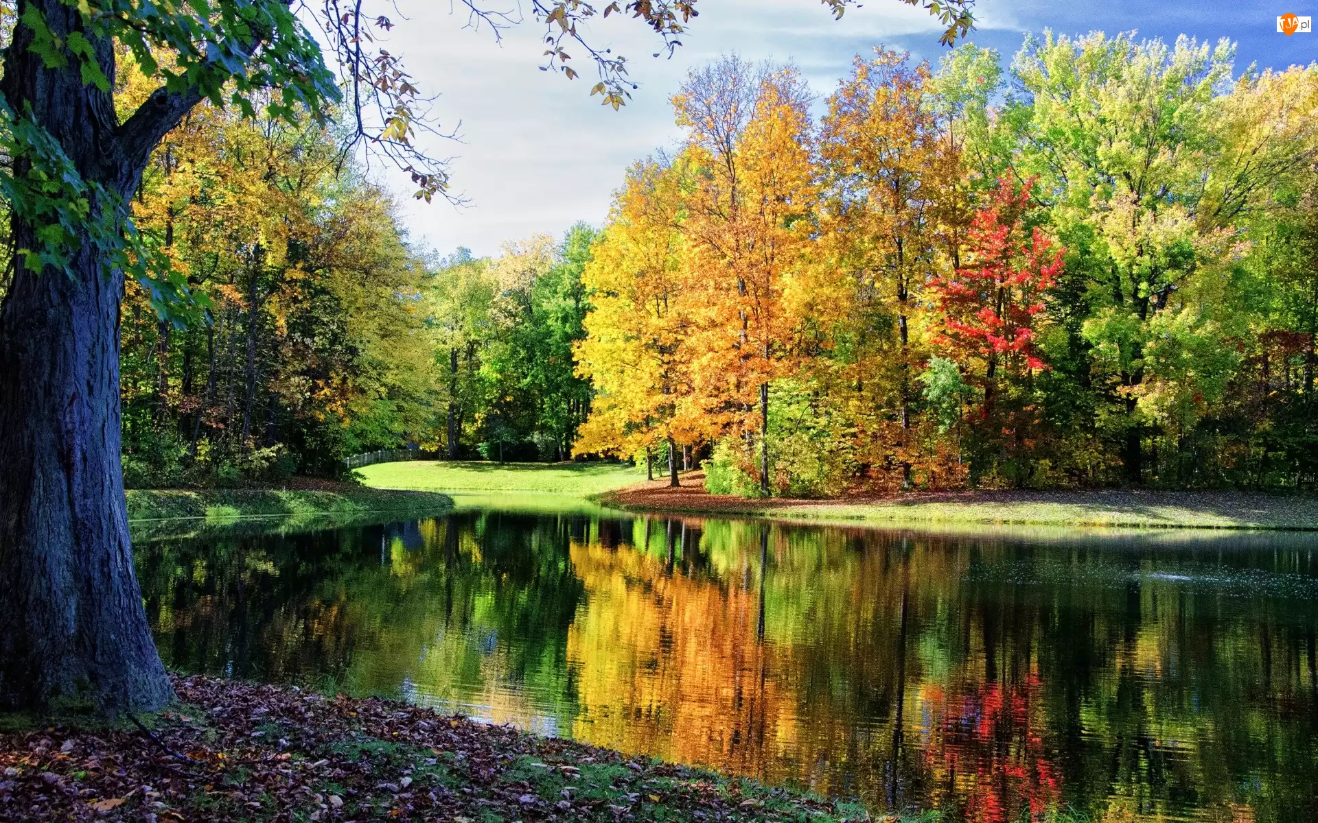 Kolorowe, Jesień, Rzeka, Park, Drzewa