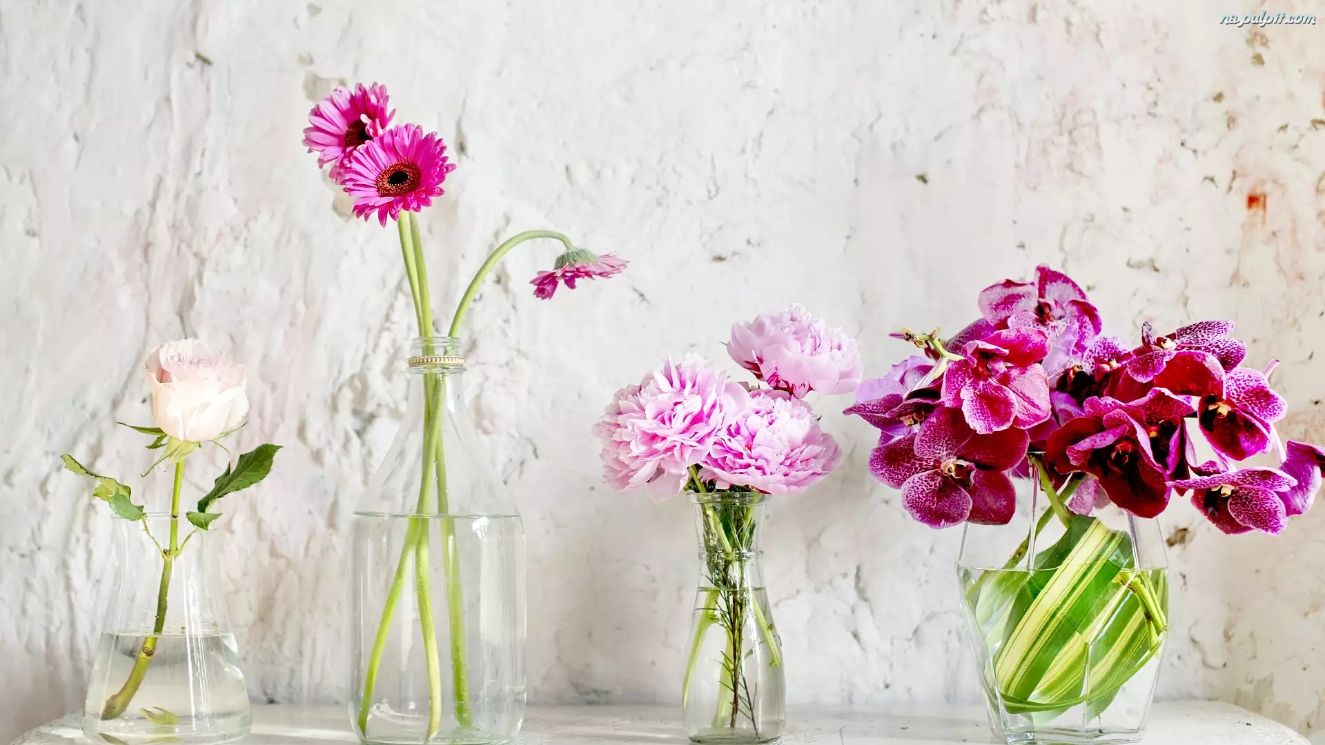 Róża, Kwiaty, Piwonie, Wazoniki, Gerbery, Storczyki