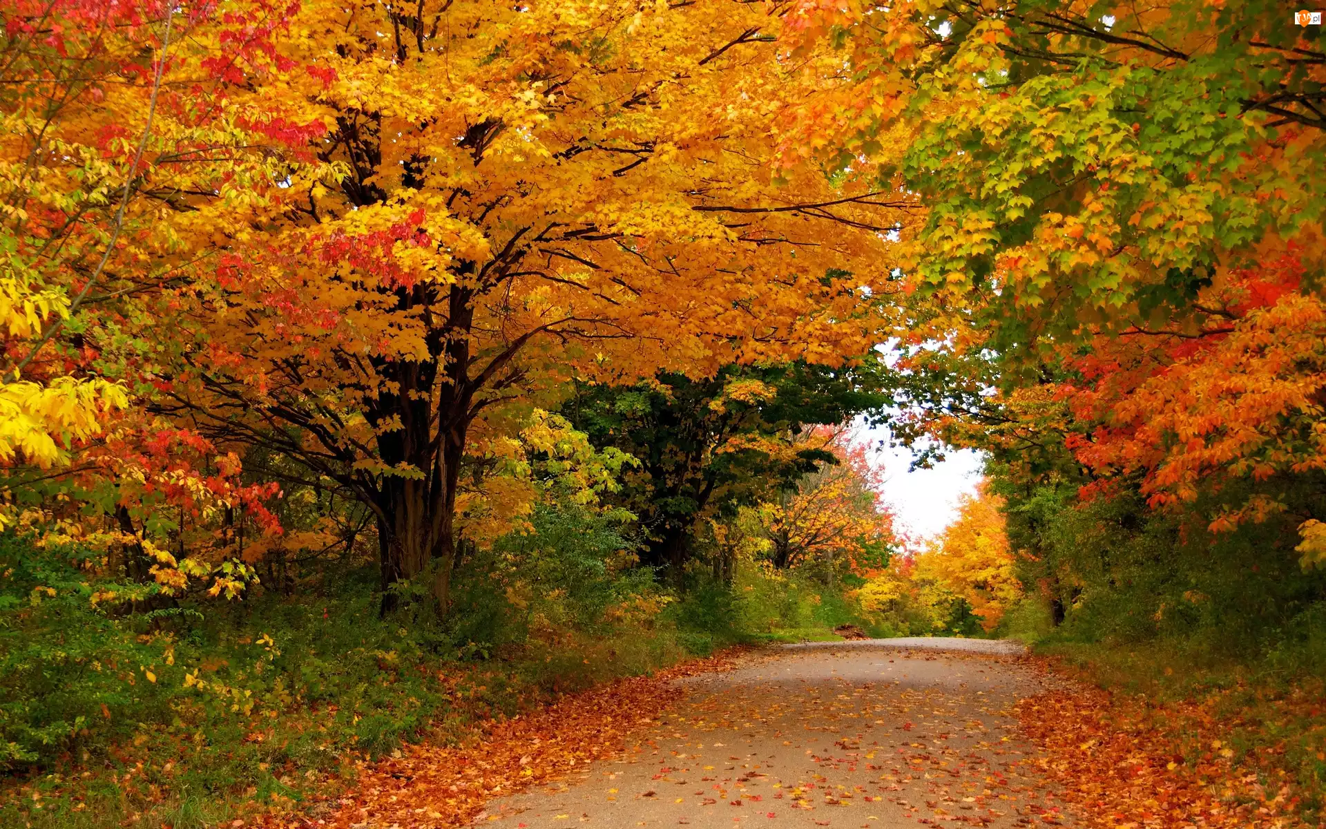 Kolorowe, Liście, Droga, Jesień, Las, Drzewa