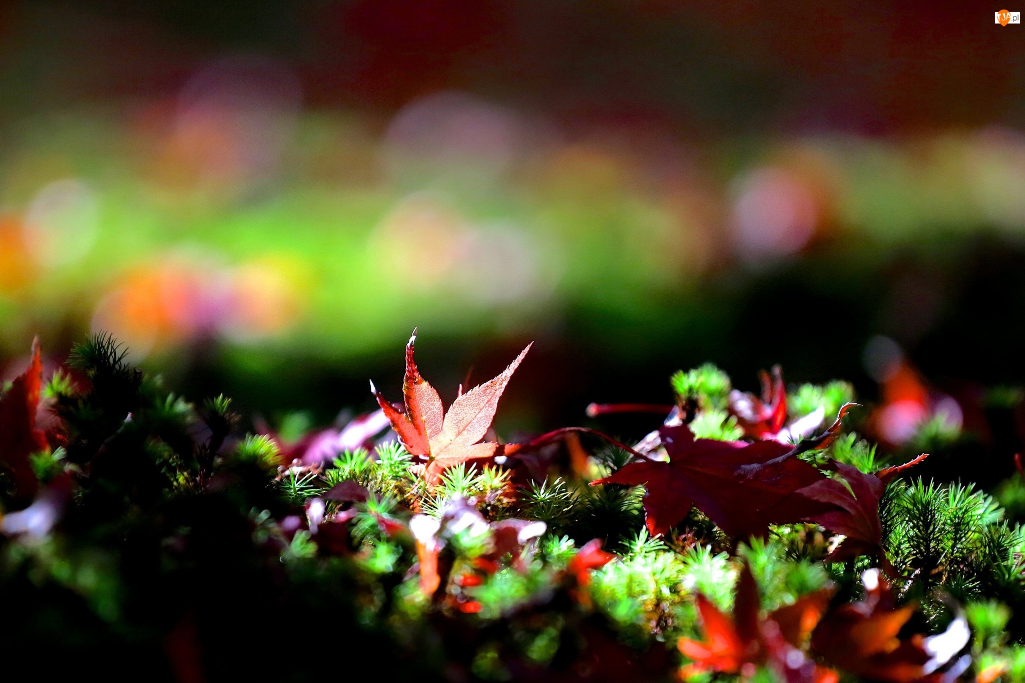 Kolorowe, Makro, Liście, Mech