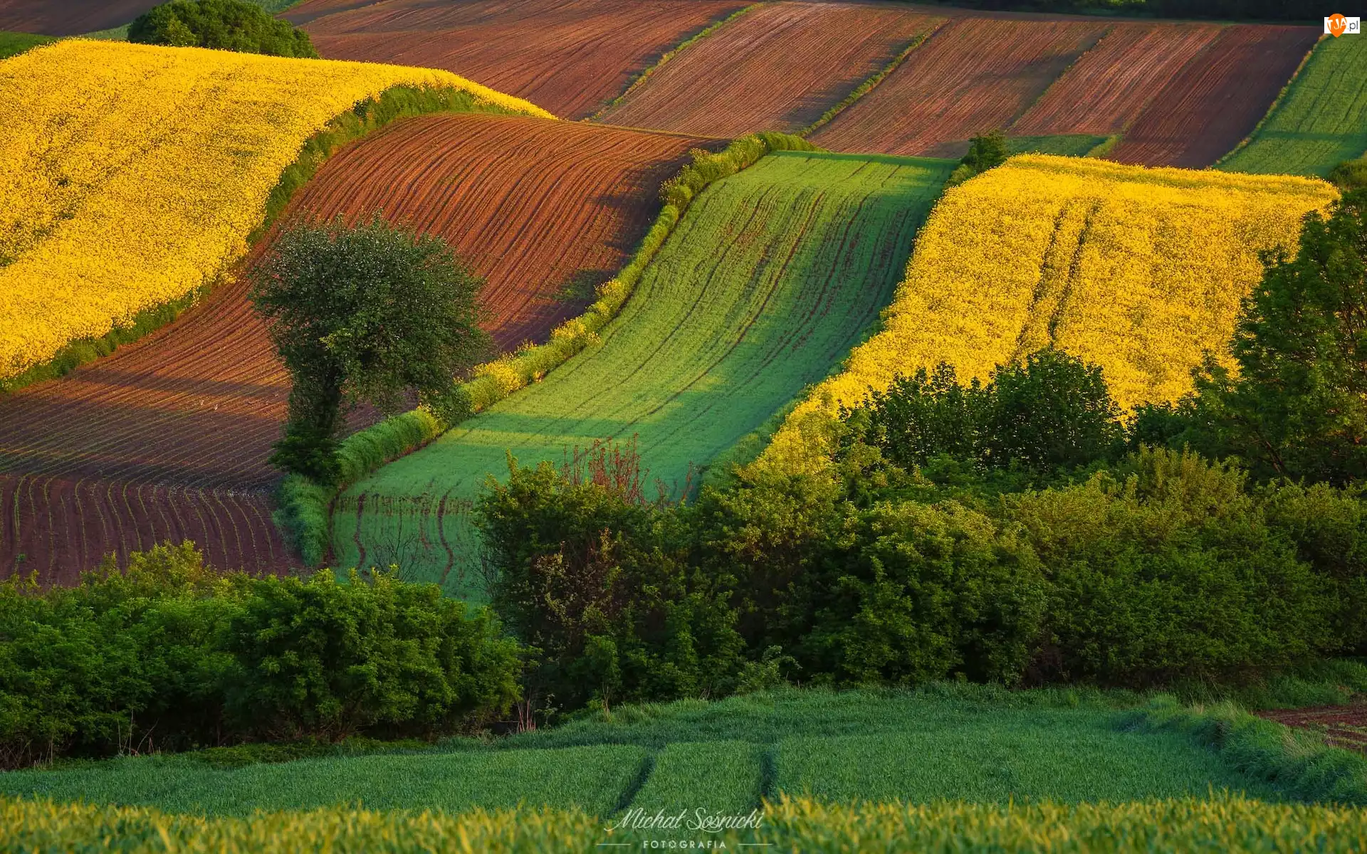 Maki, Pole, Trawa, Łąka, Chabry, Drzewa