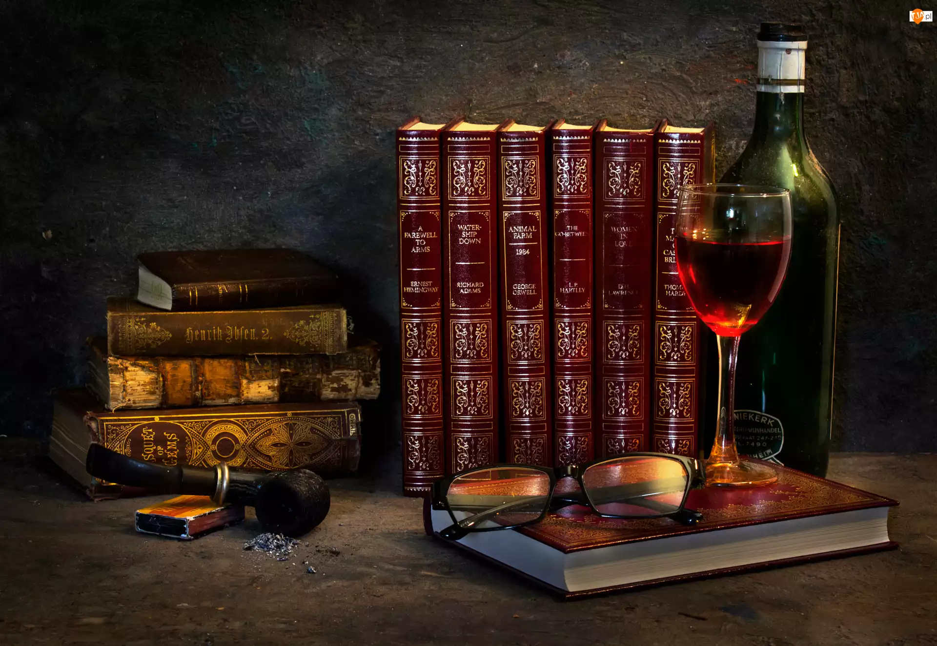 Fajka, Książki, Wino, Okulary