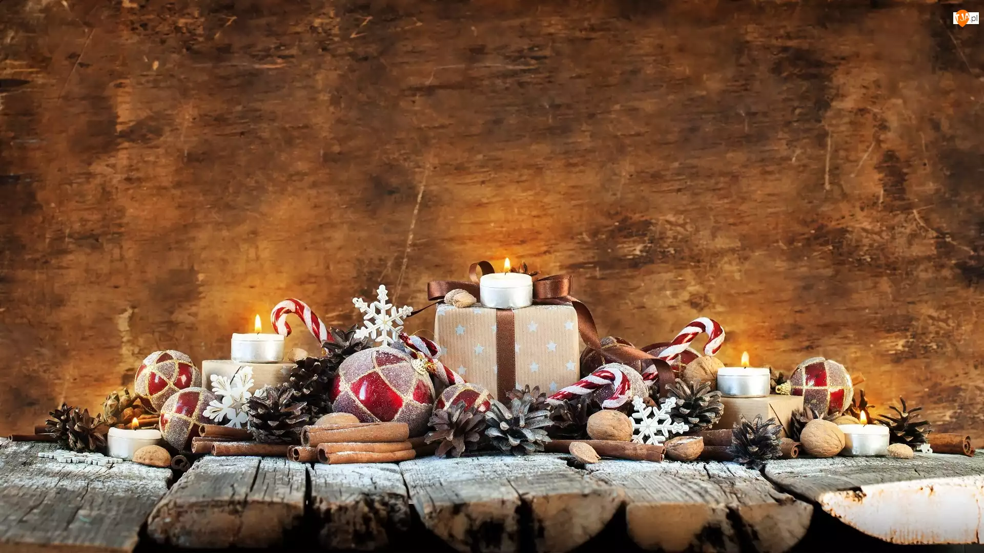 Świąteczne, Bombki, Prezenty, Cynamonu, Gwiazdki, Świeczki, Szyszki, Boże Narodzenie, Laski