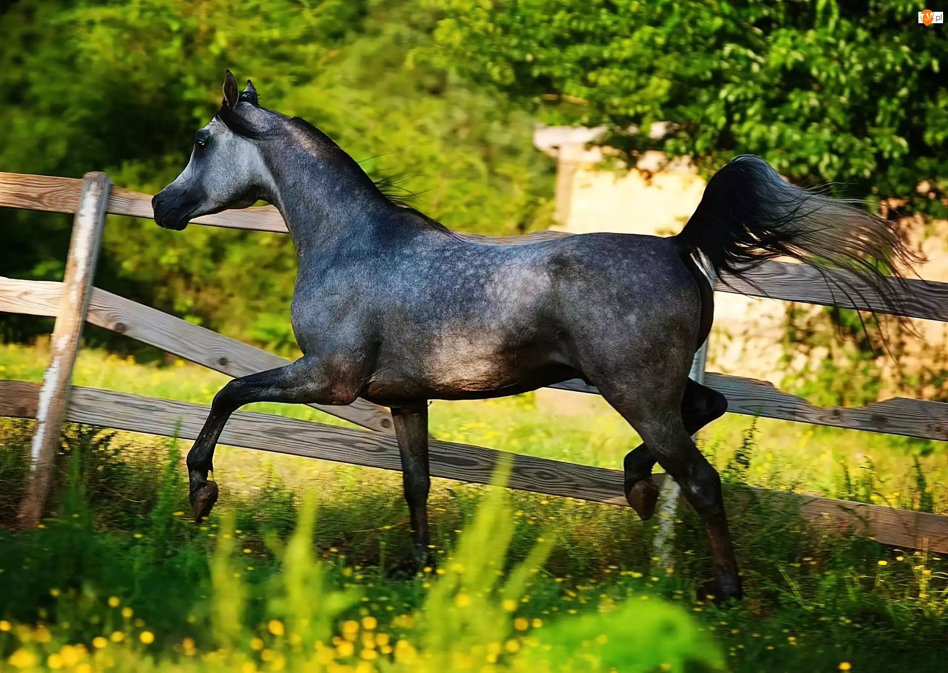 Koń, Zieleń, Rasowy, Ogrodzenie
