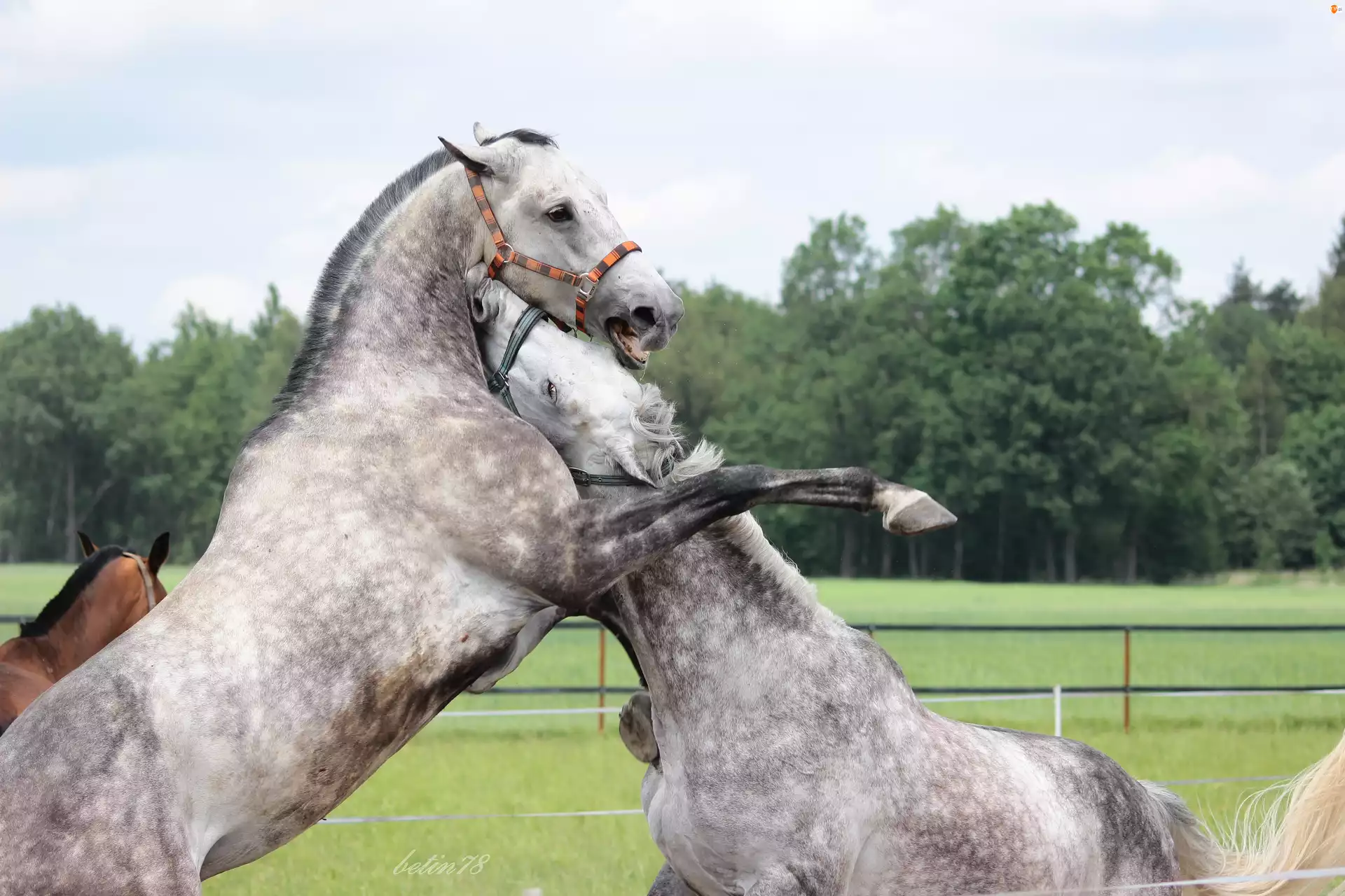 Konie, Pastwisko, Siwe, Walka