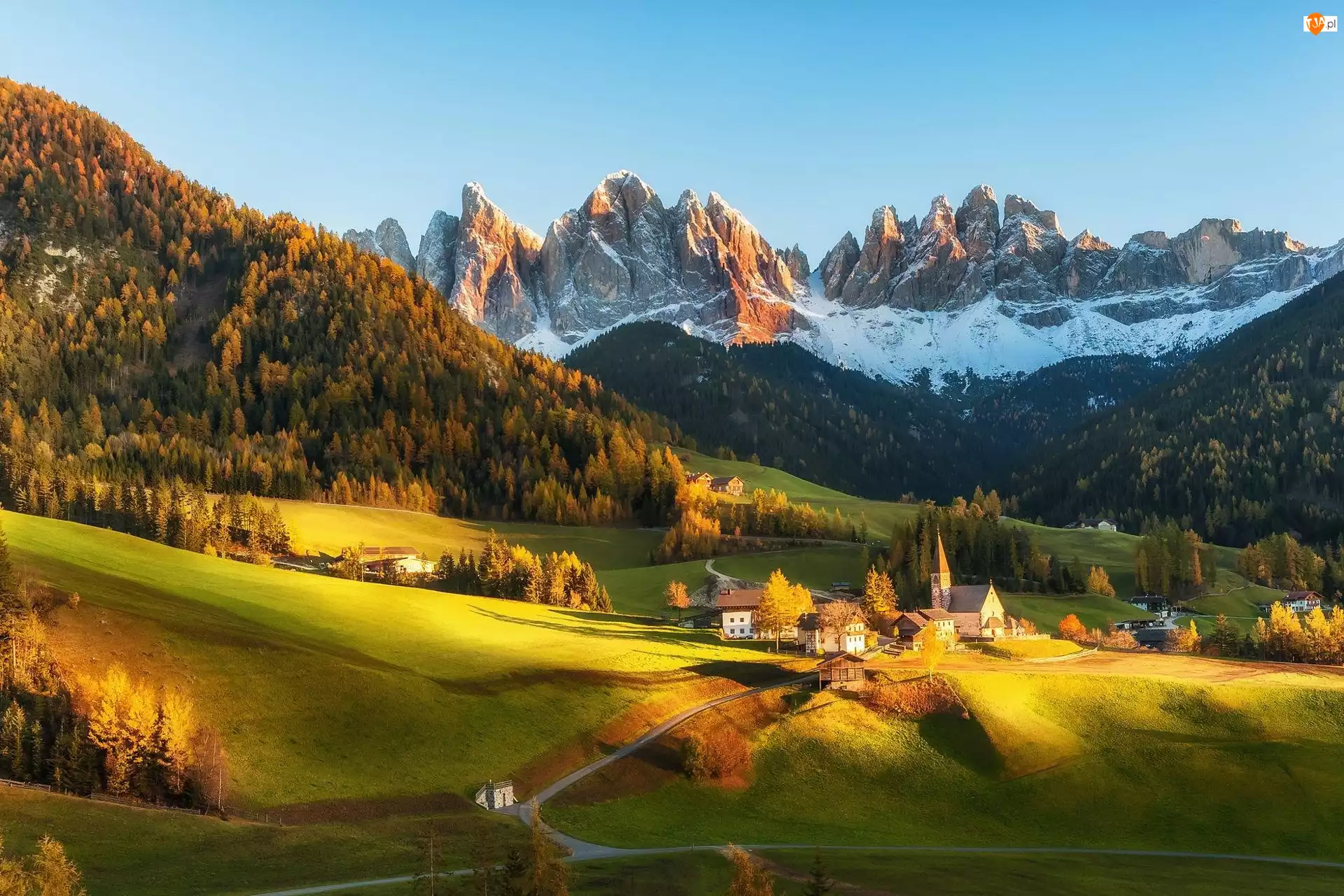 Kościół, Domy, Góry, Droga, Las, Śnieg
