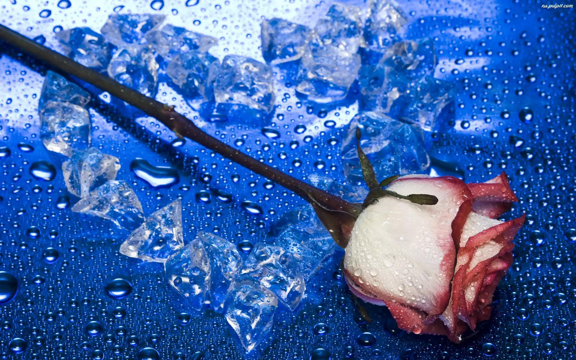 Kostki, Krople, Róża, Wody, Serce, Lodu
