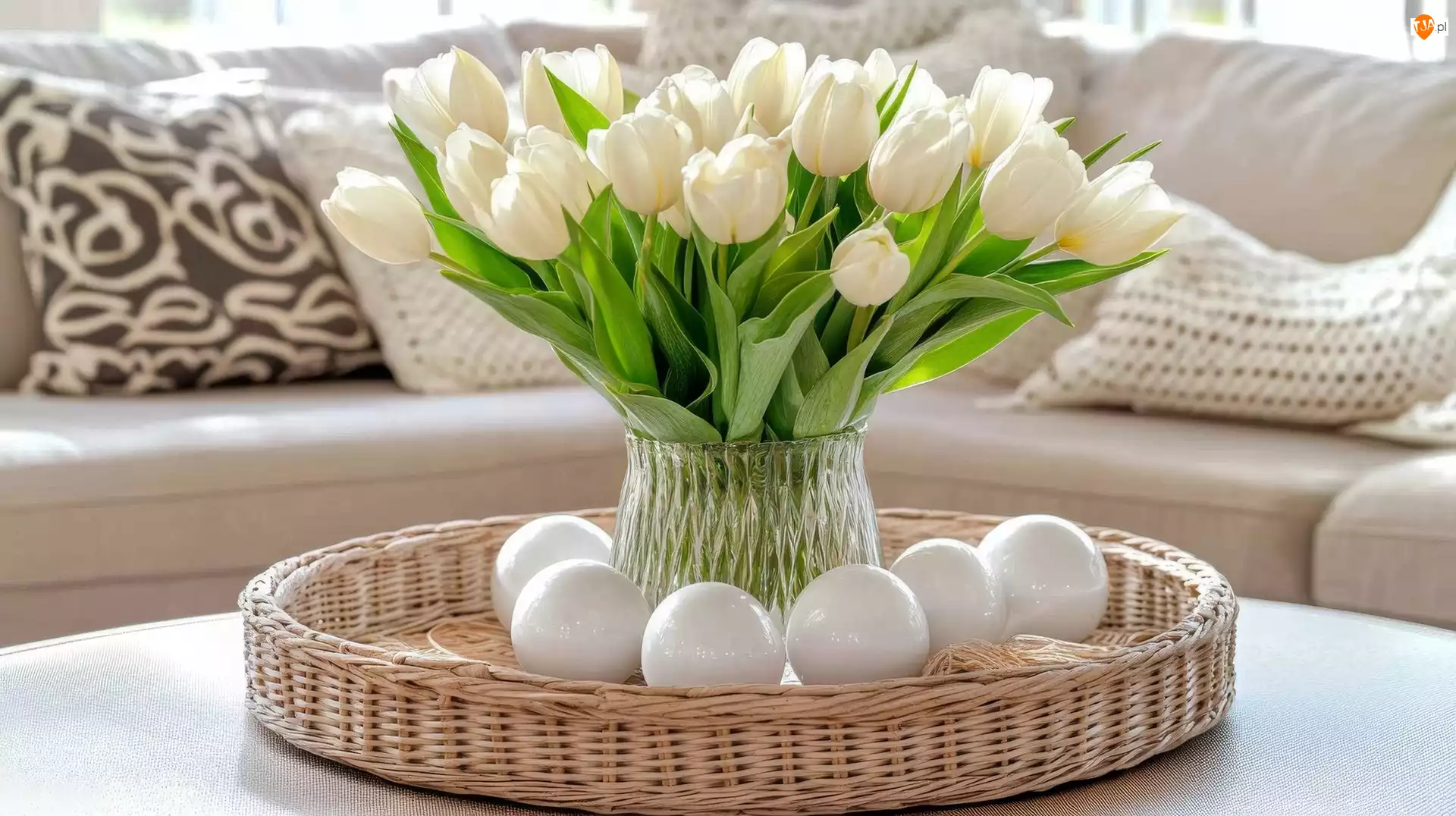 Koszyczek, Białe, Tulipany, Wazon