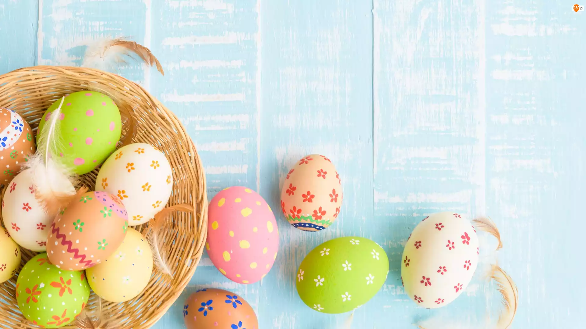 Pisanki, Piórka, Kolorowe, Wielkanoc, Koszyk