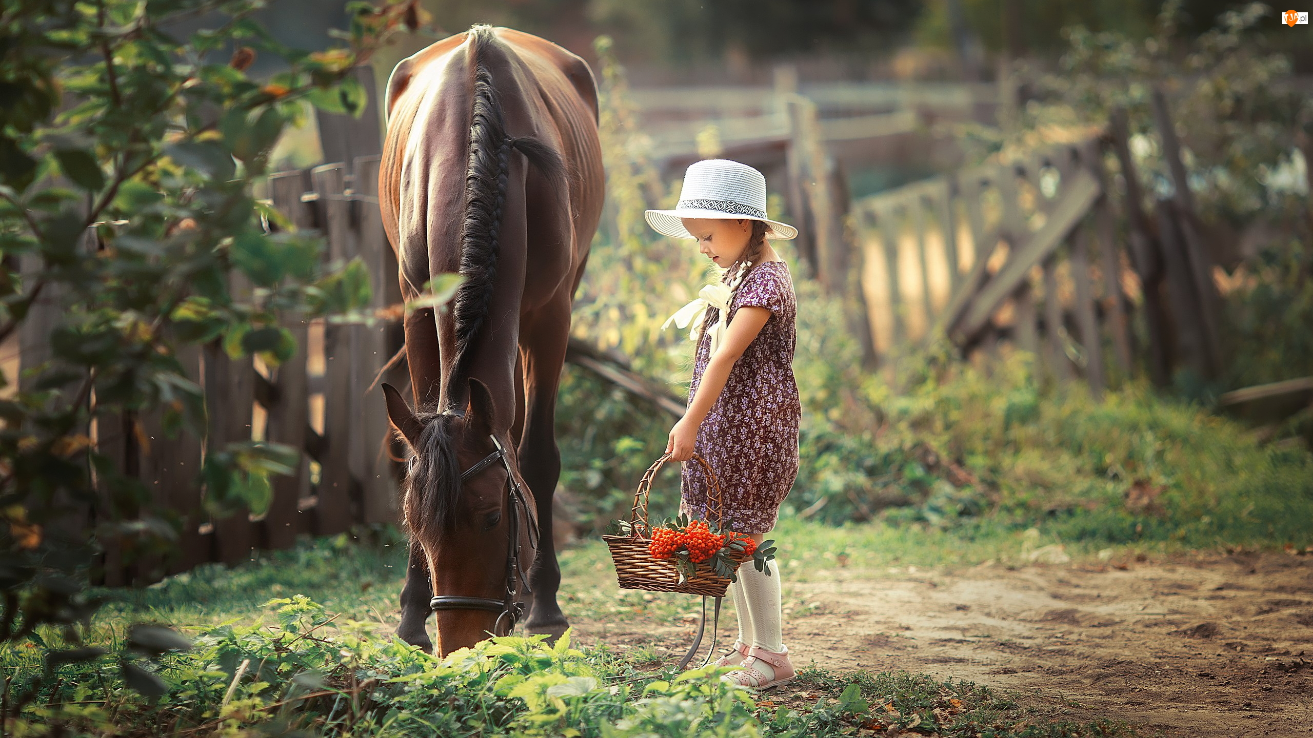 Koszyk, Koń, Dziewczynka, Kapelusz