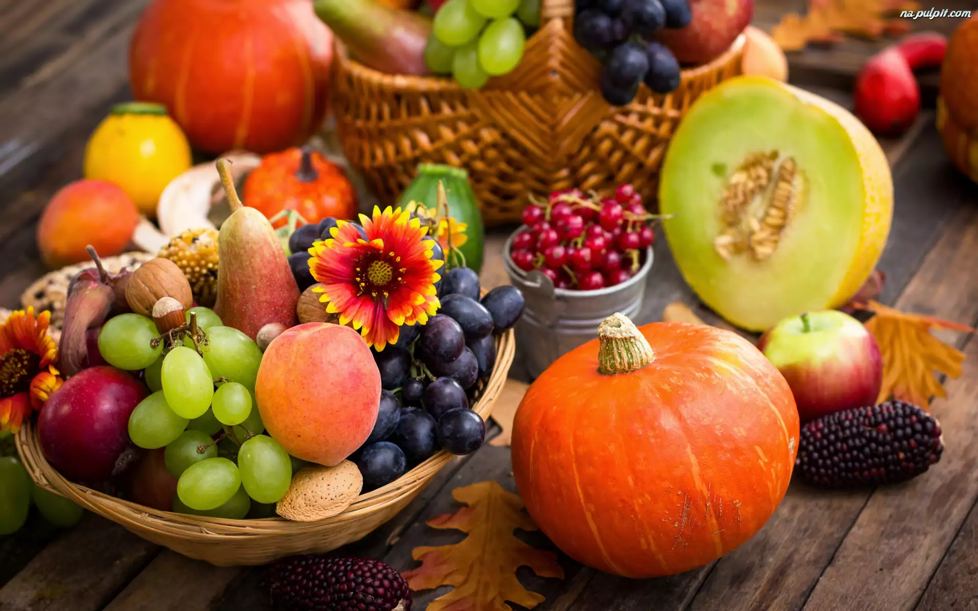 Koszyk, Winogrona, Melon, Dynie, Owoce