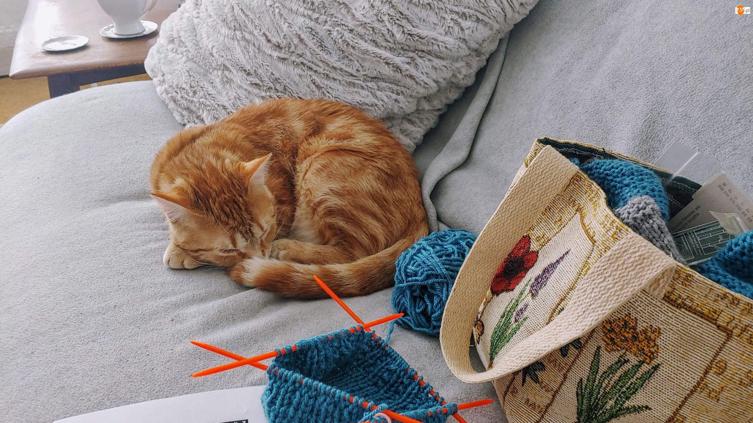 Kot, Śpiący, Wełna, Torba, Kanapa, Robótka