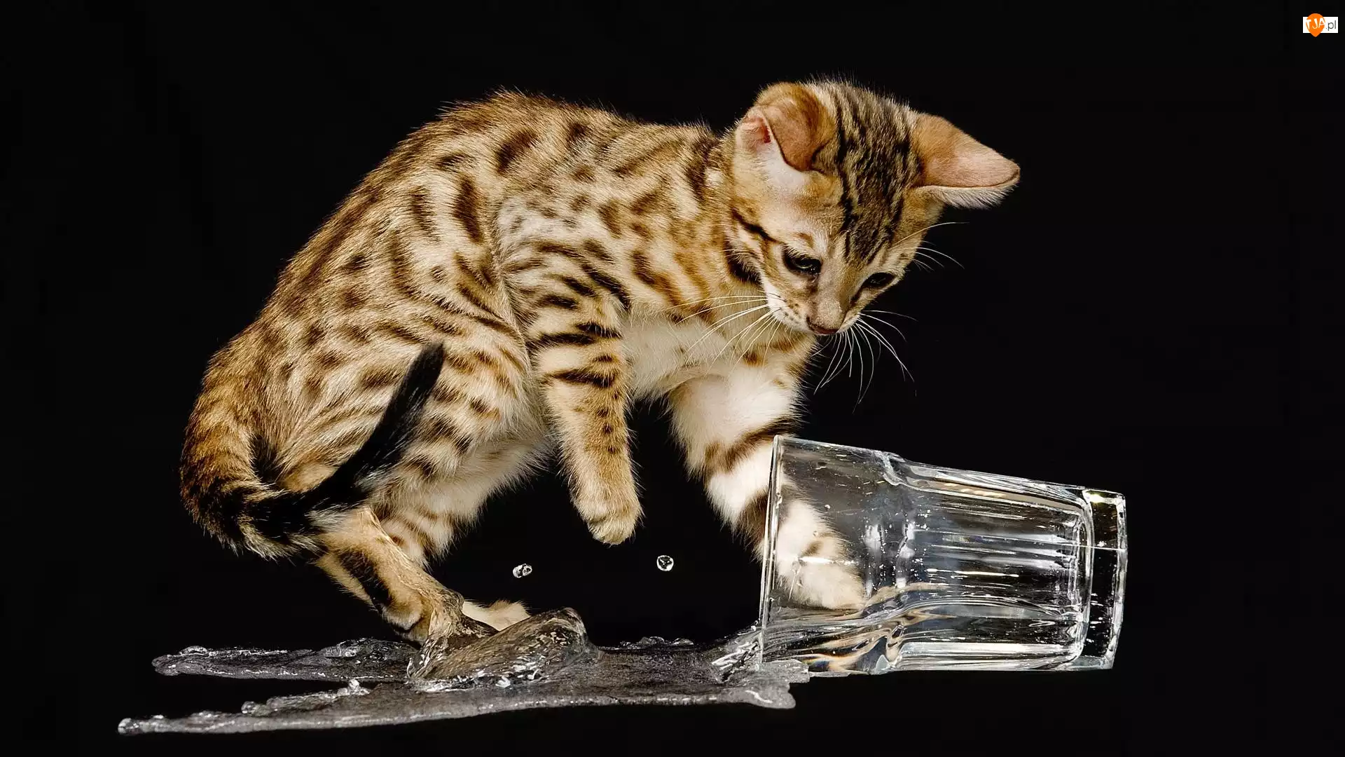 Kot, Woda, Szklanka, Rozlana