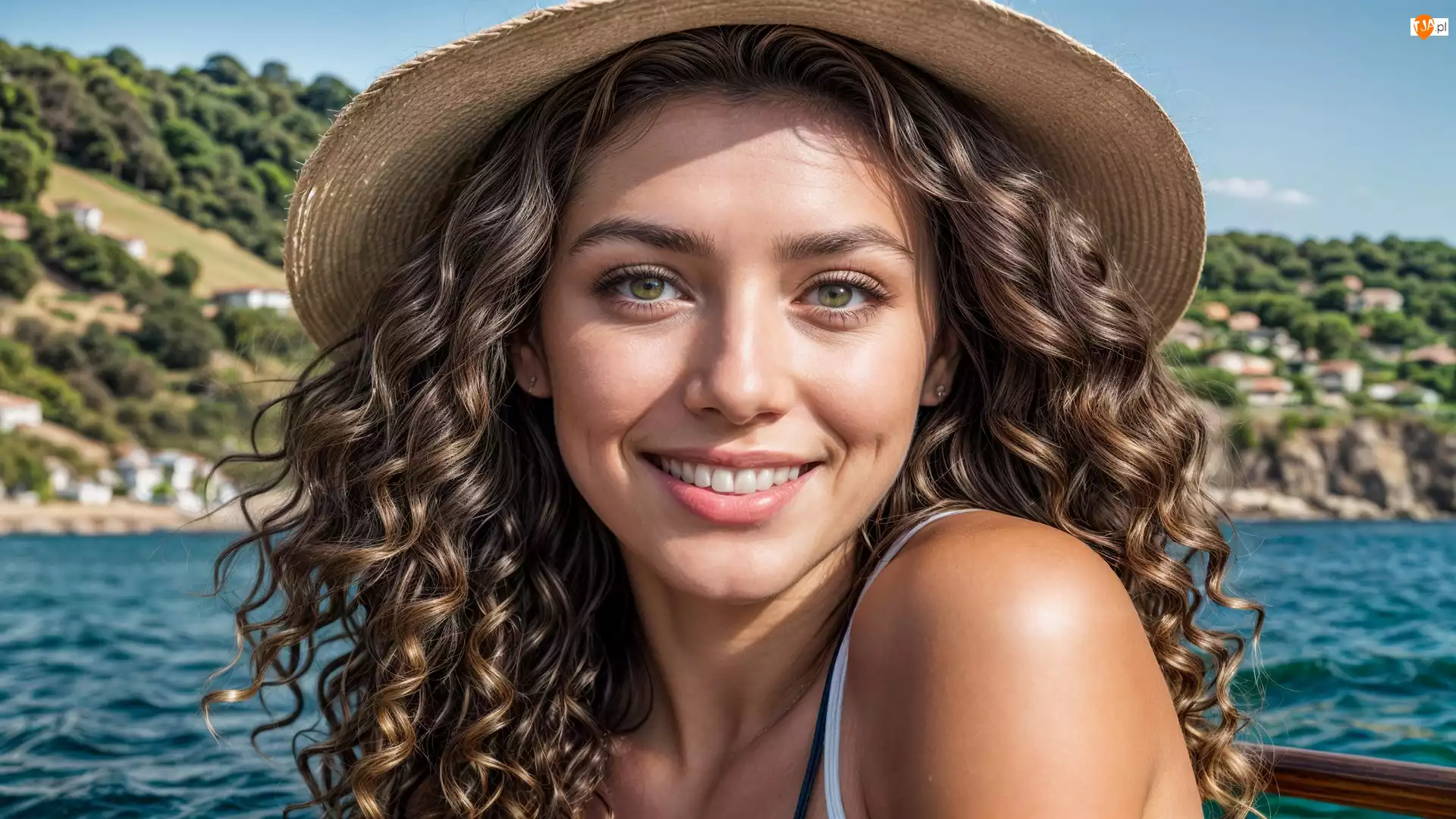 Kręcone, Uśmiech, Kapelusz, Kobieta, Włosy