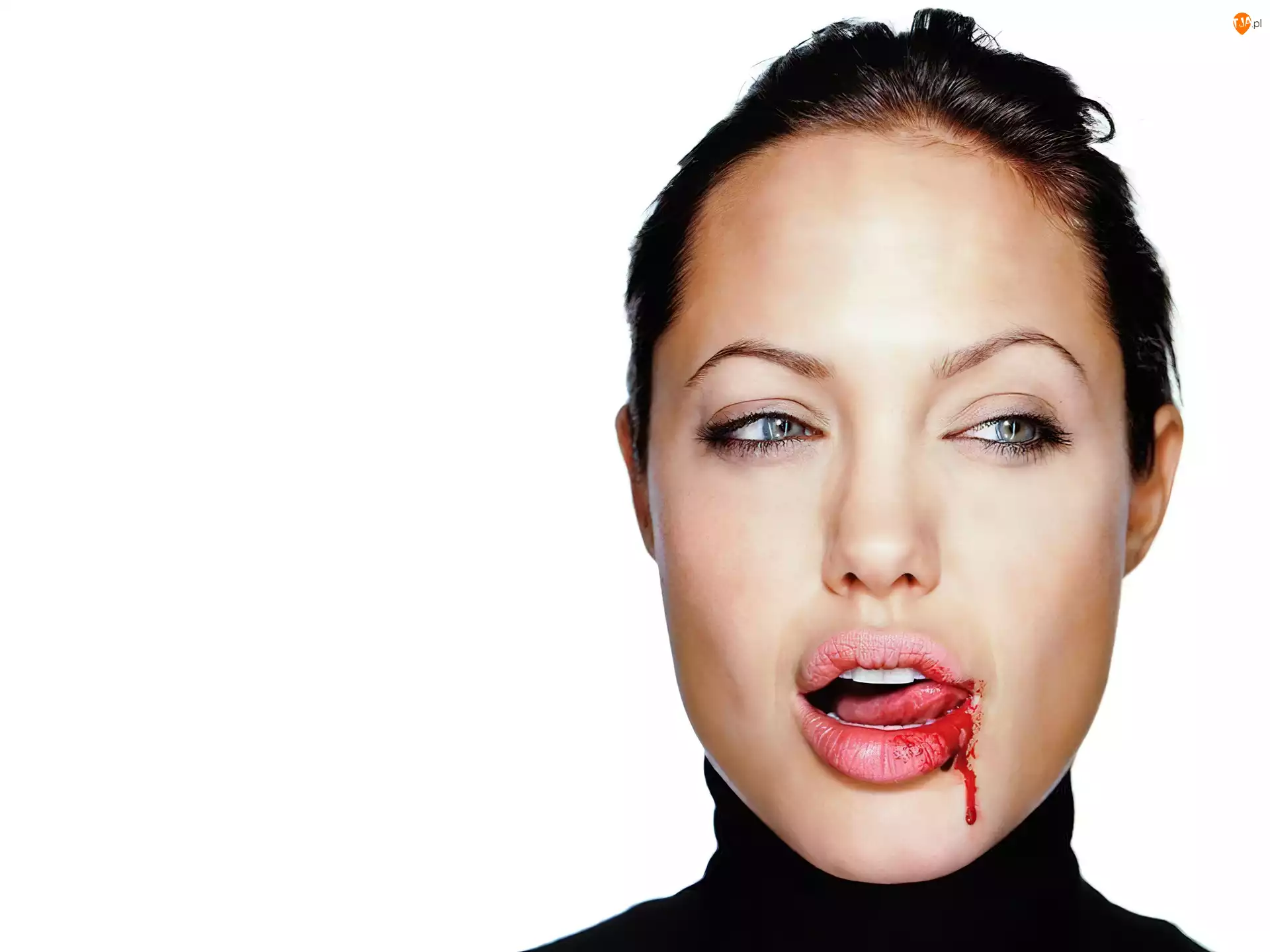 krew, Angelina Jolie, czarny golf