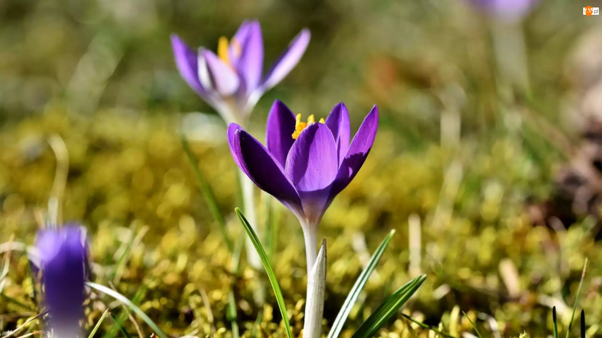 Rozmyte tło, Fioletowy, Krokus, Trawa