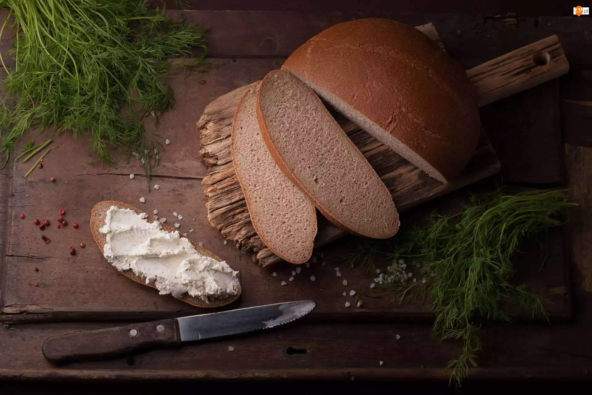 Kromki, Nóż, Bochenek, Chleb, Koper