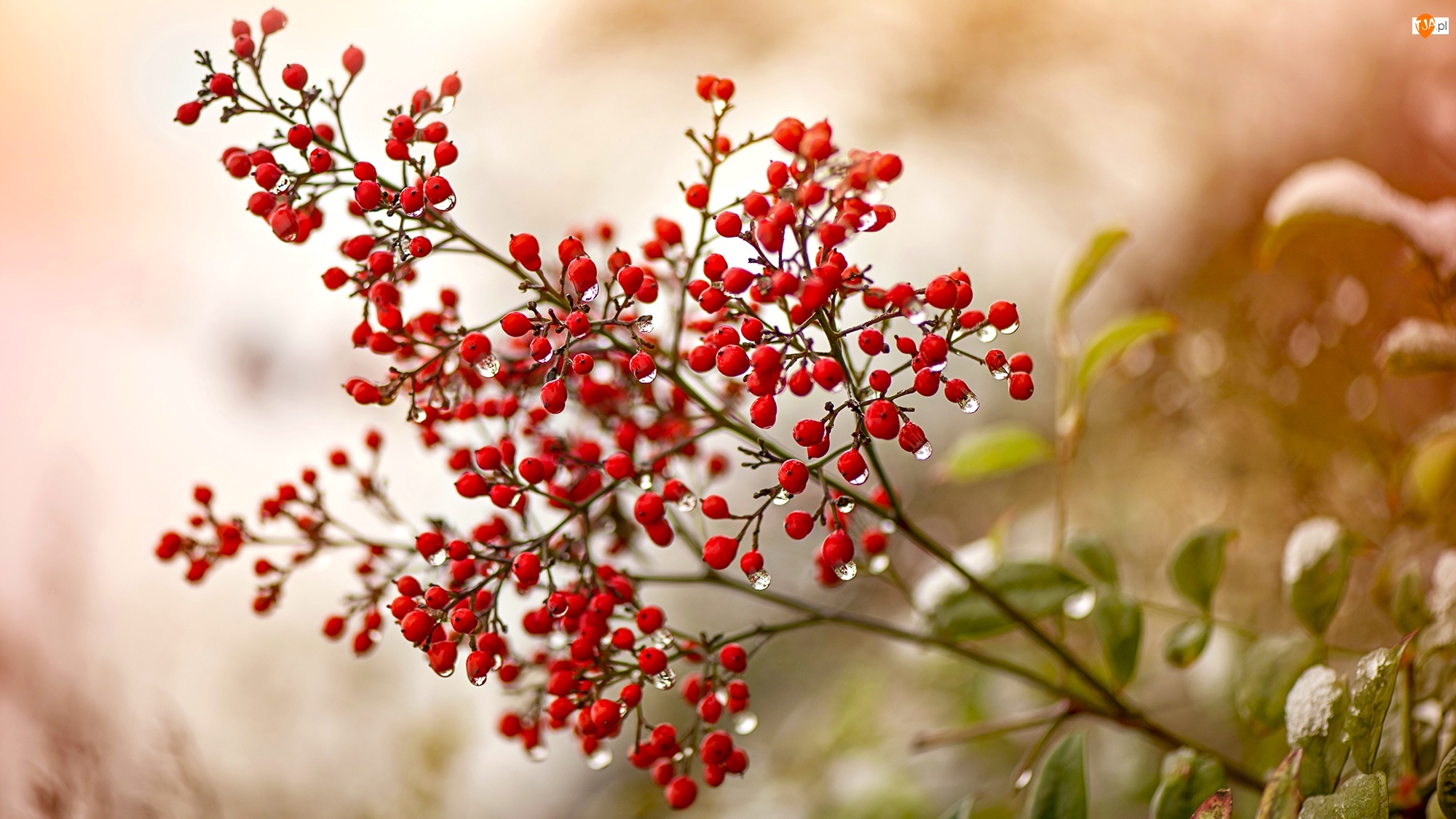 Krzew, Gałązka, Niebiański bambus, Rozmycie, Nandina, Krople