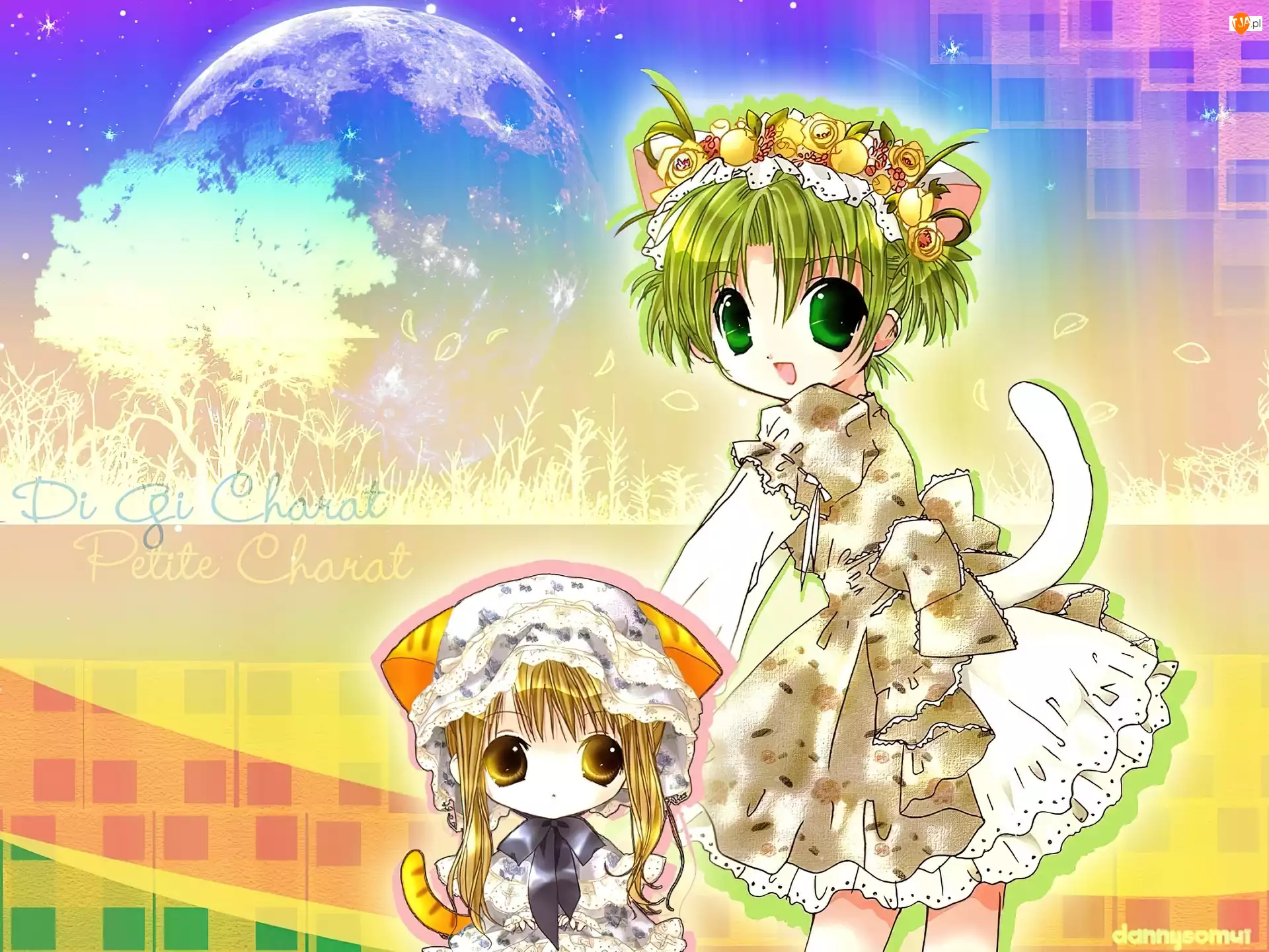 księżyc, Digi Charat, oczy, dziewczyny, ogon