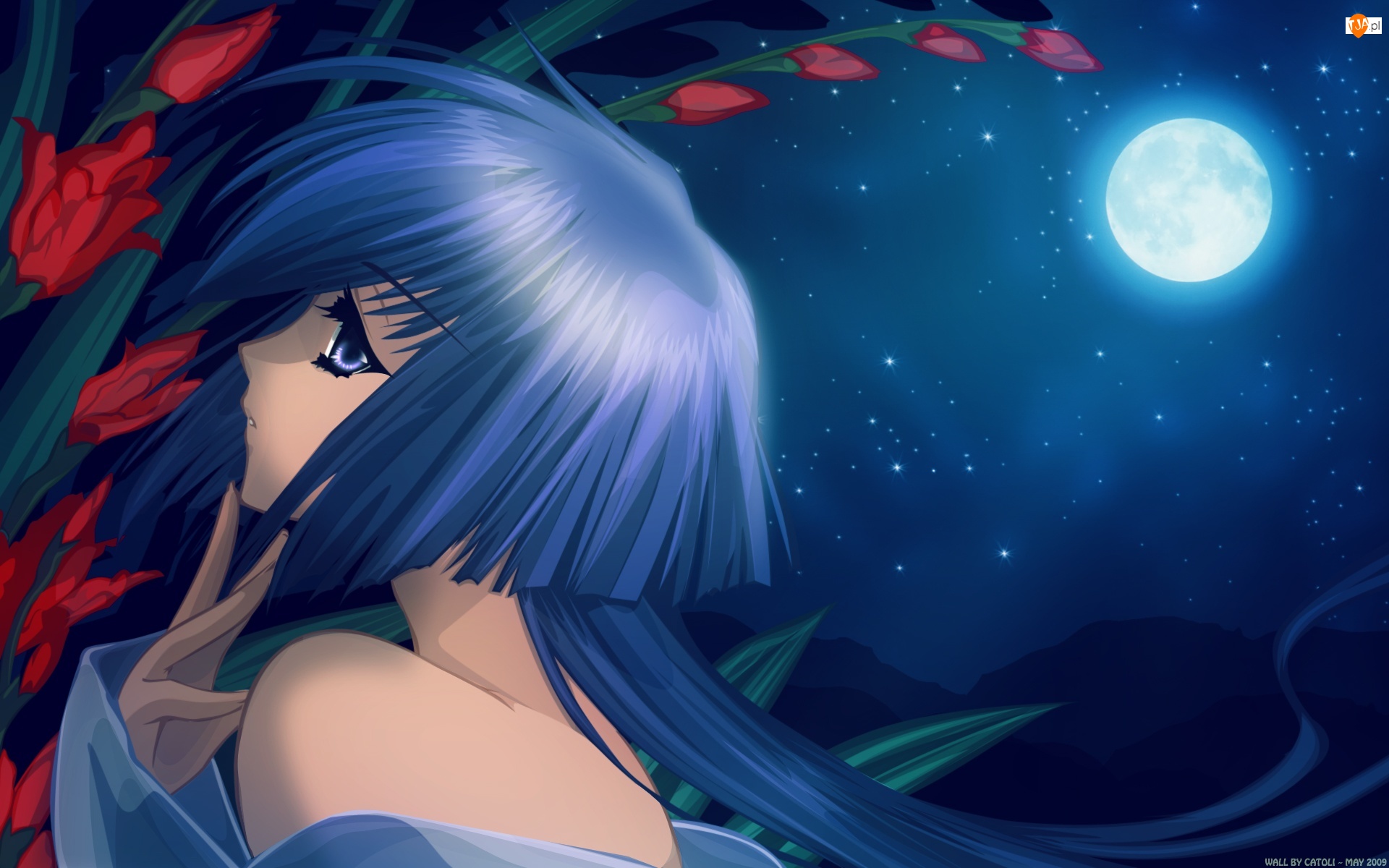 Księżyc, Dziewczyna, Kwiaty