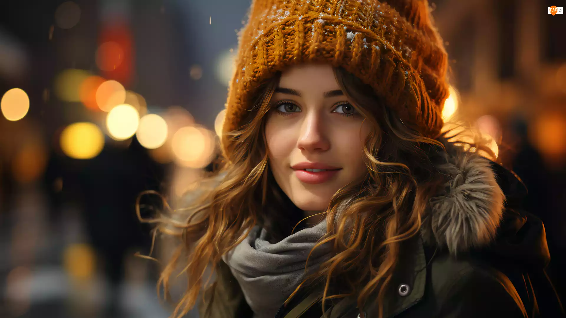 Kurtka, Kobieta, Spojrzenie, Czapka