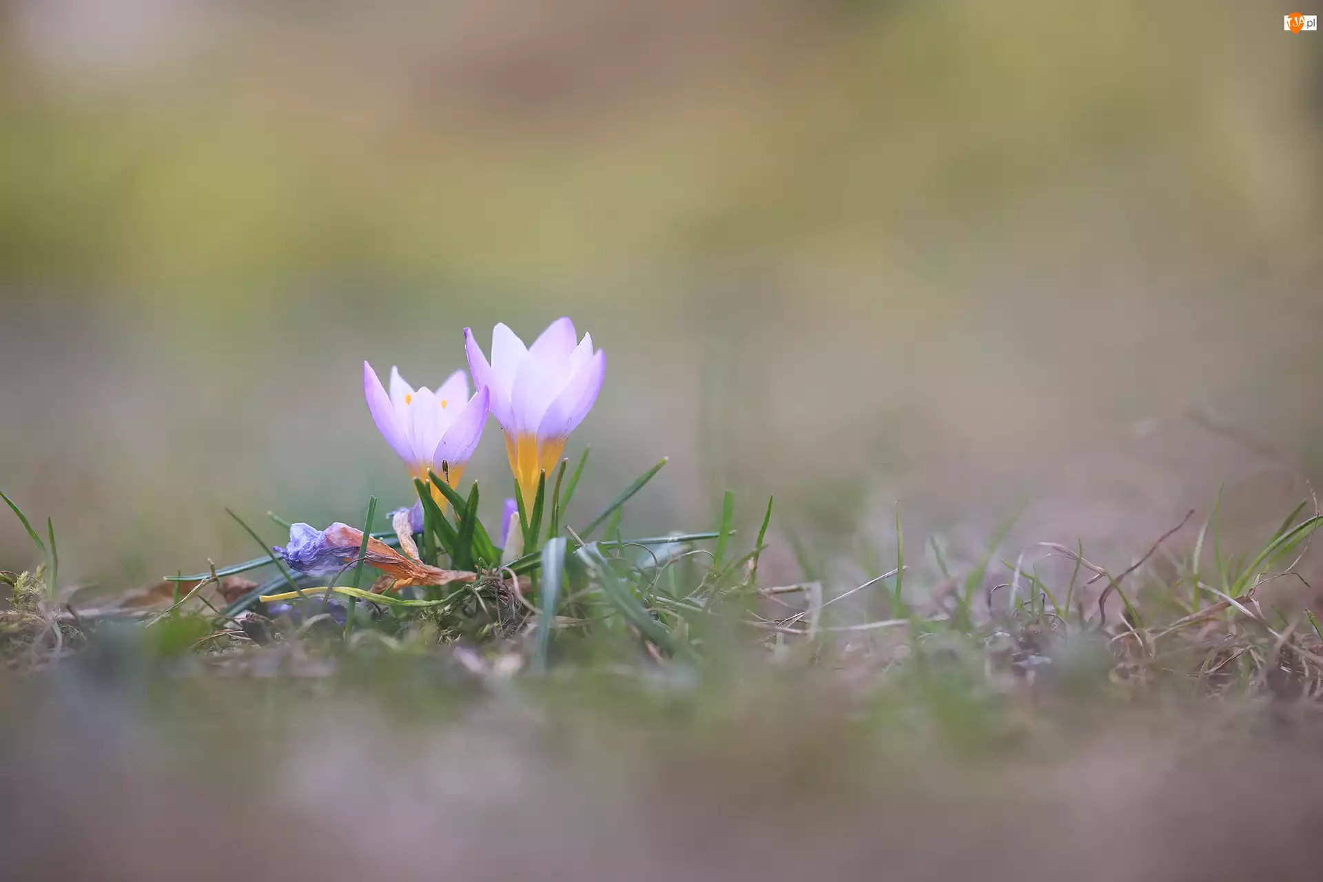 Fioletowe, Dwa, Krokusy, Kwiaty