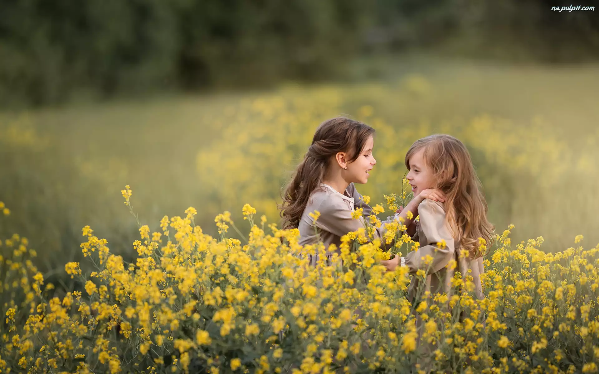Kwiaty, Dzieci, Dziewczynki, Rzepak